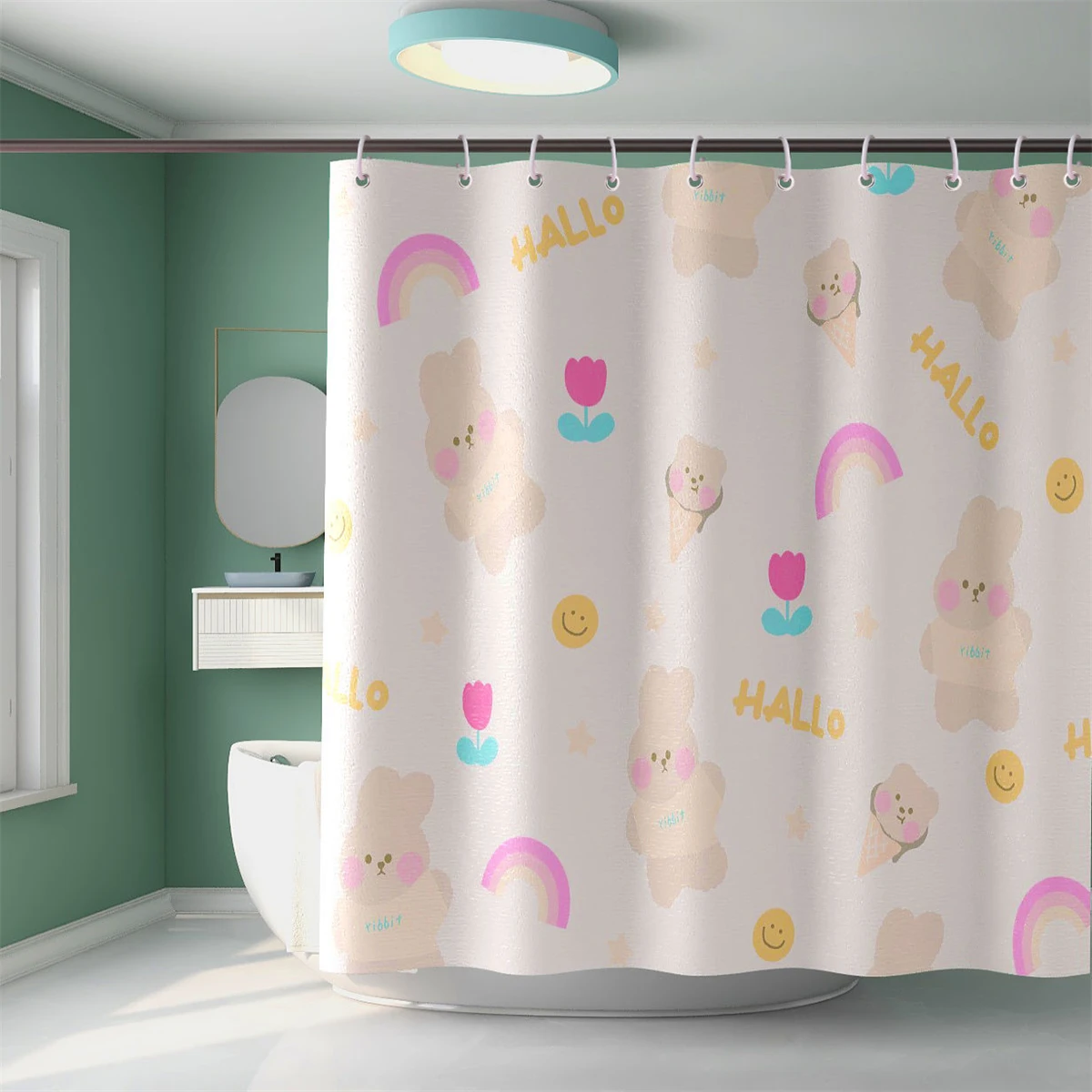 Занавеска для душа в скандинавском стиле с изображением оленя, милые животные, цветные цветы, водонепроницаемая занавеска для ванной из полиэстера, Длинные s-образные занавески 220 см