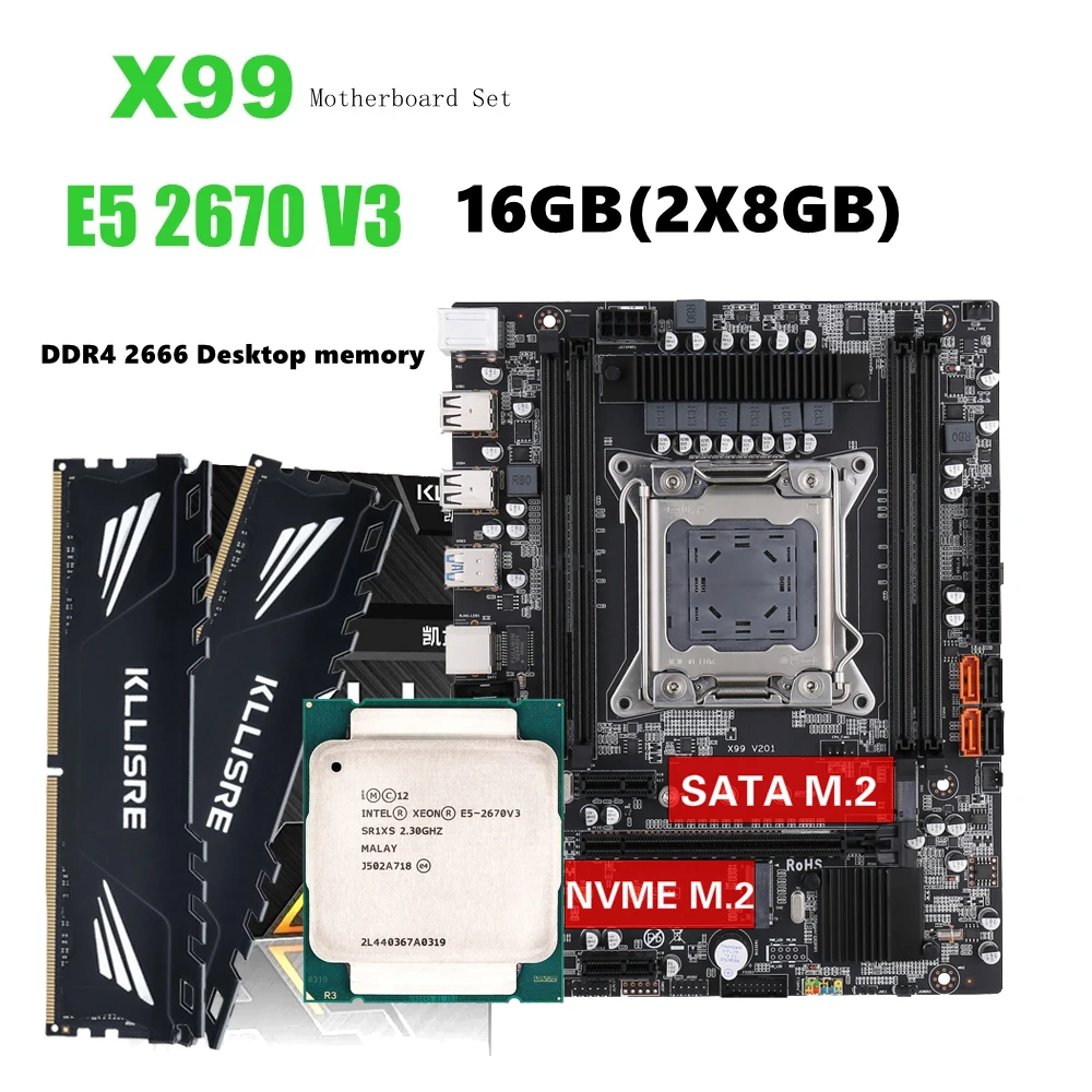 Kllisre X99 комплект материнской платы XEON E5 2670 V3 LGA 2011-3 ЦП 2 шт. X 8 ГБ = 16 Гб 2666 МГц DDR4 память
