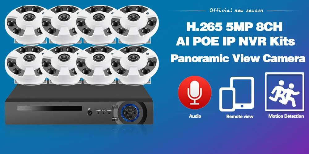5-мегапиксельная система наблюдения рыбий глаз, 8-канальный комплект видеорегистратора POE, комнатная домашняя IP панорамная купольная система видеонаблюдения, комплект камер XMEYE POE