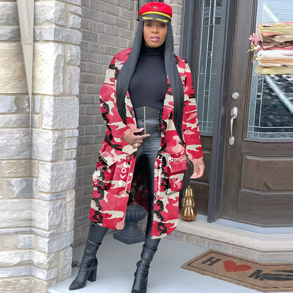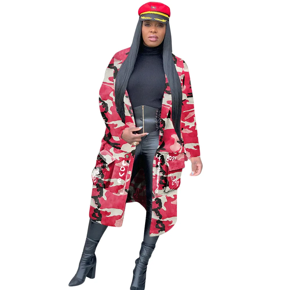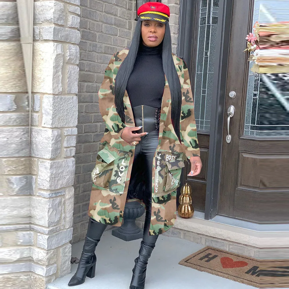 Осенне-зимняя камуфляжная куртка с надписью, женское длинное пальто...