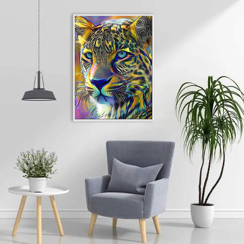 Алмазная картина сделай сам с рамкой, тигр, картина для Стразы, дом...