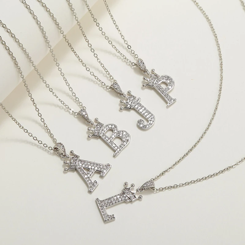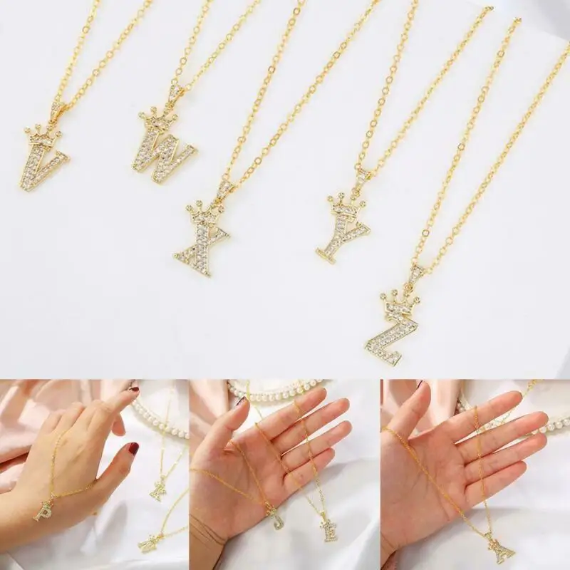 Цепочка с подвеской в виде короны для мужчин и женщин, роскошное ожерелье с буквами английского алфавита, 26 дюймов