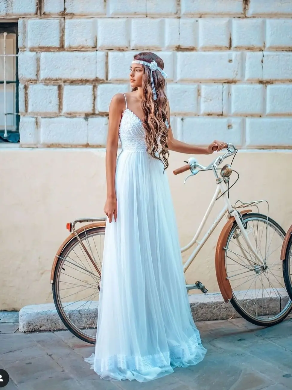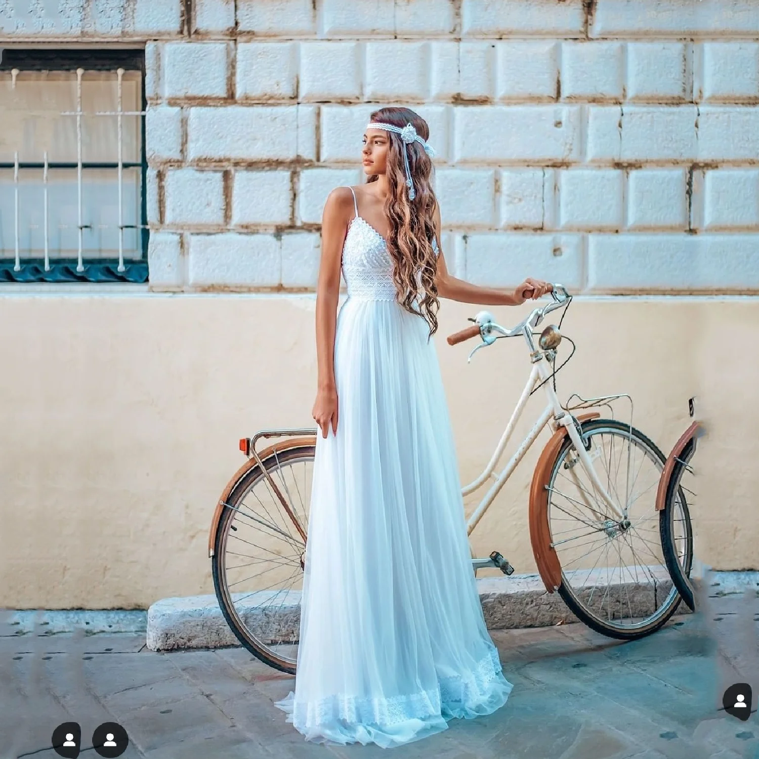 Свадебное платье в стиле бохо, кружевное пляжное платье на бретелях...