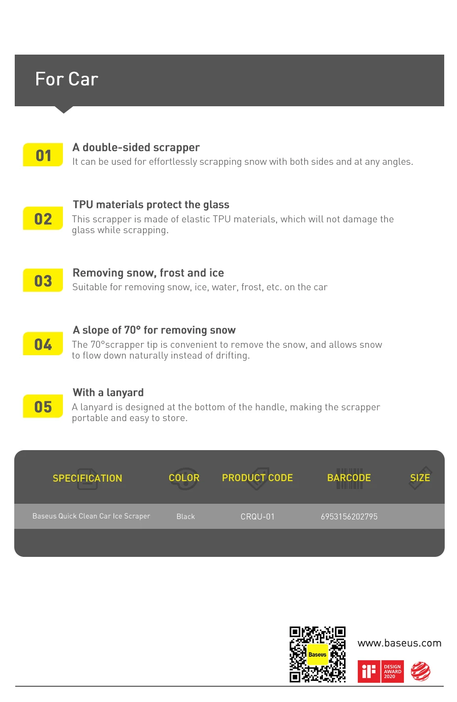 Скребок для снега Baseus, автомобильный инструмент для удаления снега на лобовом стекле, из ТПУ