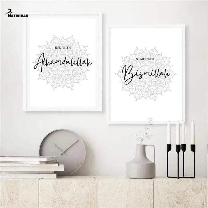 Цветочный постер с цитатами исламский мусульманский Аллах, Картина на холсте, настенные художественные принты, картина для украшения гостиной