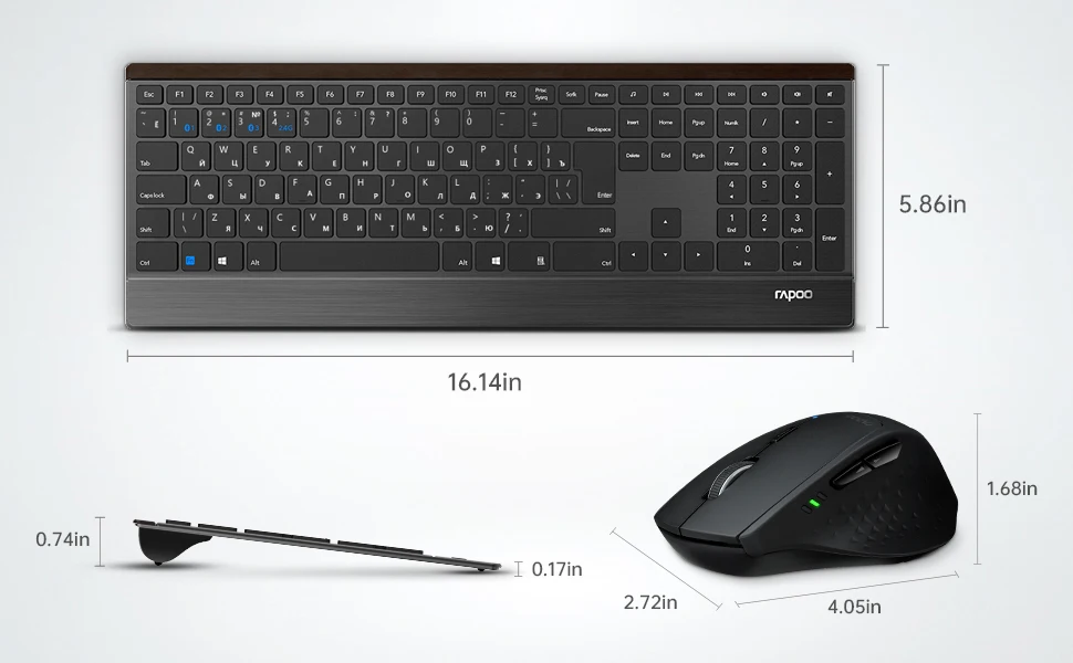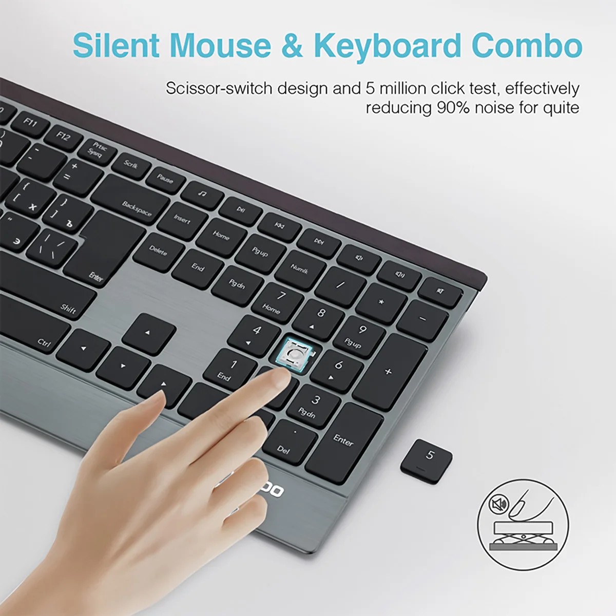 Русская клавиатура Rapoo 9500 м, многорежимная Беспроводная Bluetooth клавиатура, мышь, Двухрежимная портативная ультратонкая клавиатура, бесшумная мышь