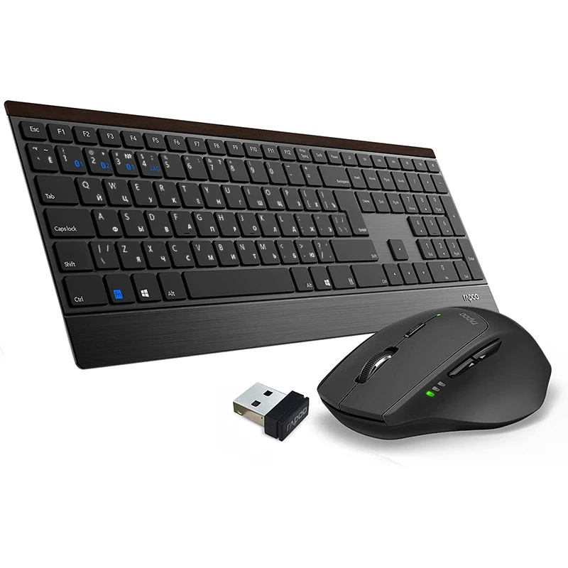 Беспроводная клавиатура 2,4 GHz и мышь combo】 технология передачи RAPOO 2,4 GHz может обеспечить стабильную передачу от помех и убедиться, что вы наслаждаетесь беспроводной свободой, просто подключитесь и играйте, драйвер или программное обеспечение не требуются. 2,4 ГГц технология обеспечивает прочное и надежное соединение в пределах 10 метров рабочее диапазон. Usb-приемник подключен к батарейного отсека мыши.