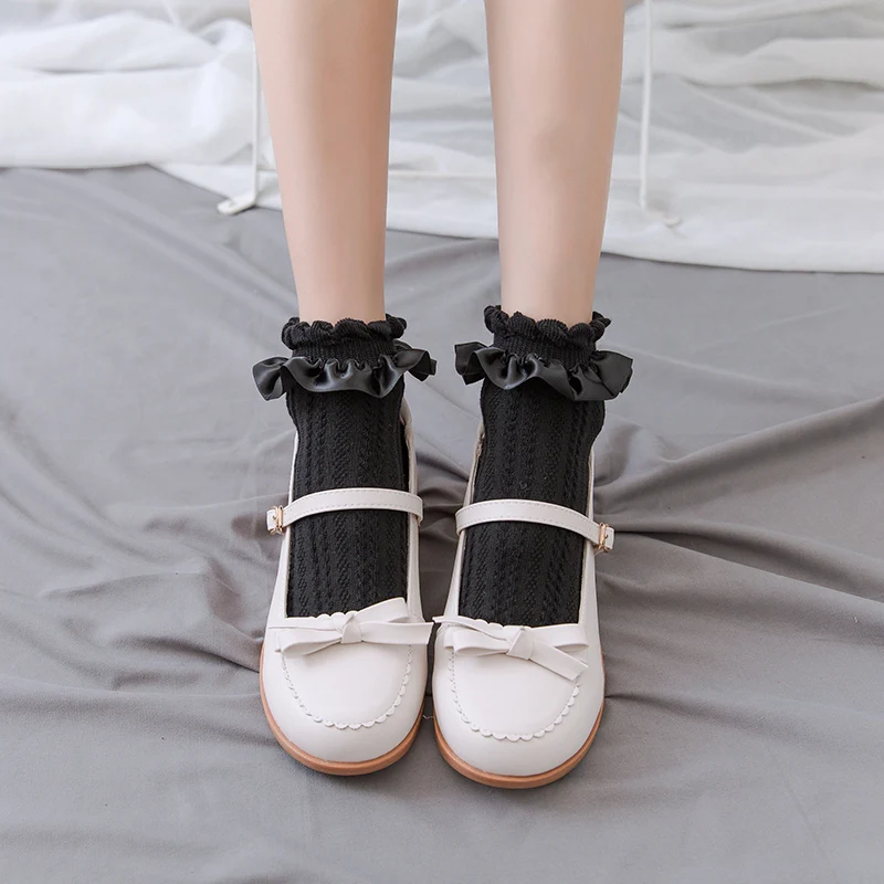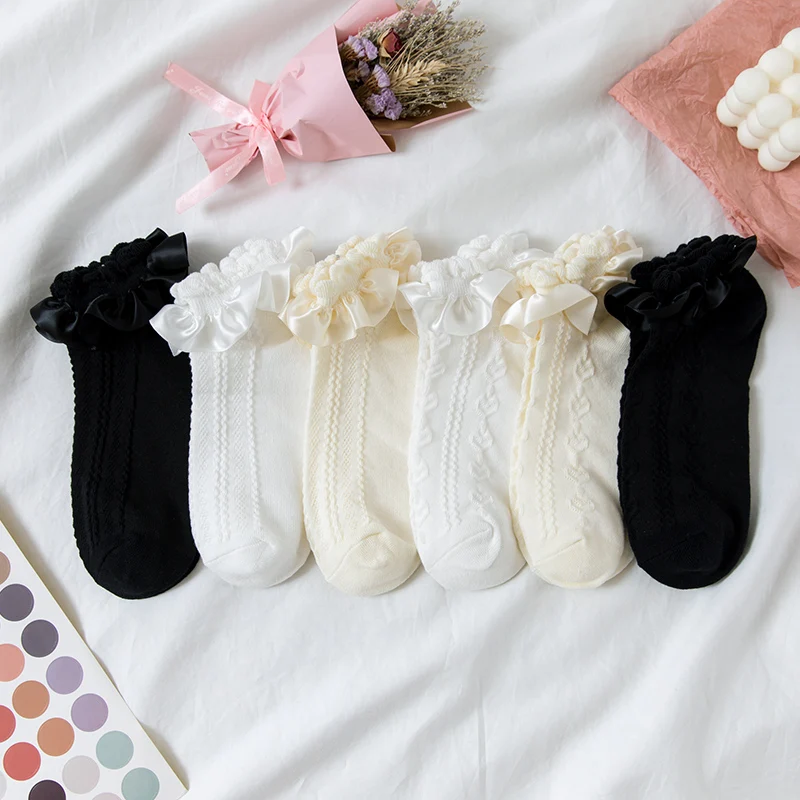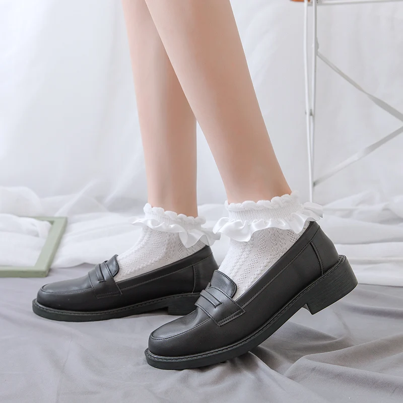 Женские хлопковые короткие носки с оборками в стиле "Лолита", мягкие милые костюмы для косплея с сердечками, аксессуары, кружевные носки, милые Мультяшные аниме Чулочные изделия для девочек