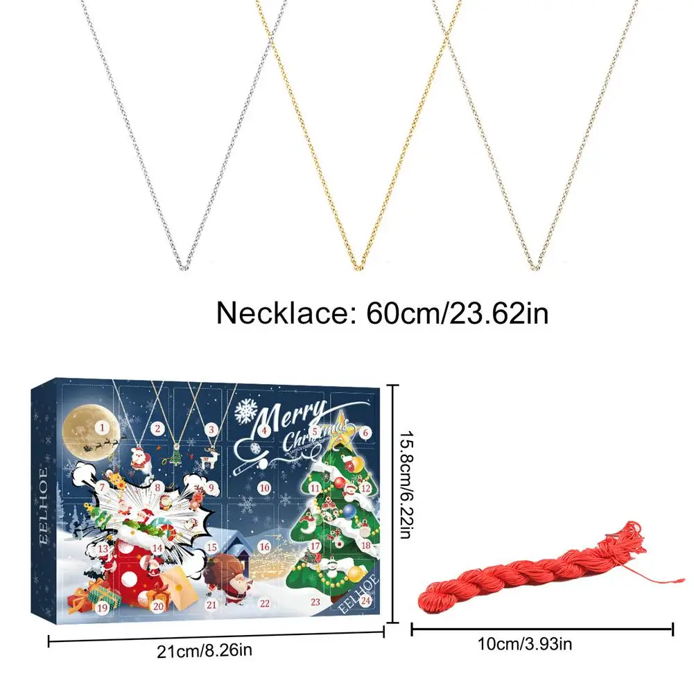 Упаковочный лист:1 * Рождественский календарь (содержит 24 подвески, 3 ожерелья, 1 красную нитку)