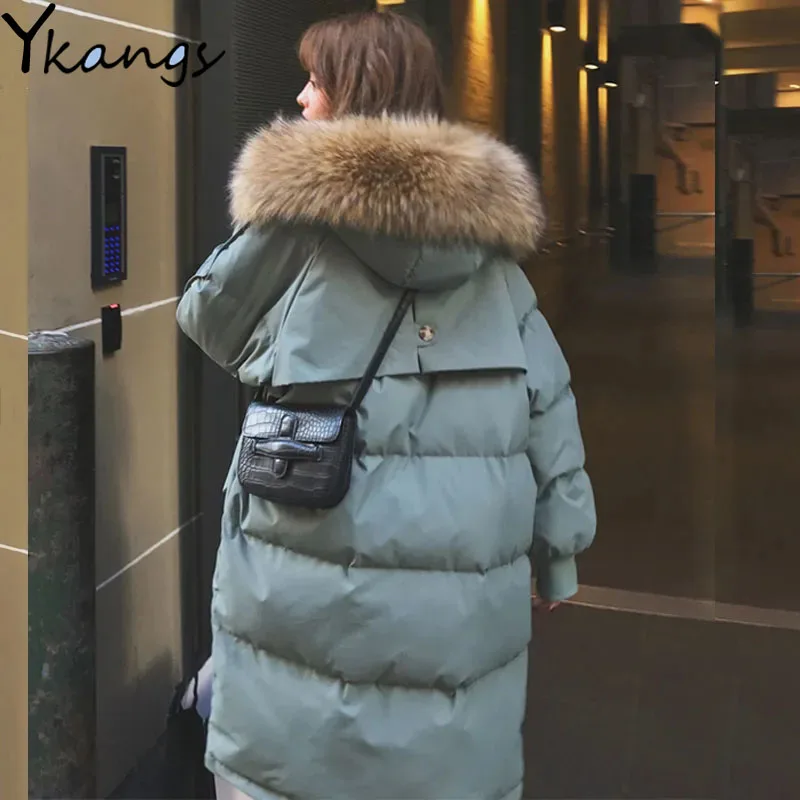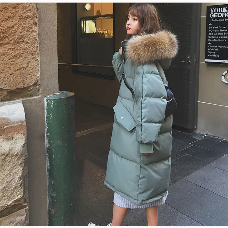 Парка женская зимняя на молнии с большим меховым воротником, утепленная длинная одежда большого размера, винтажное пальто с капюшоном, свободная однотонная теплая куртка