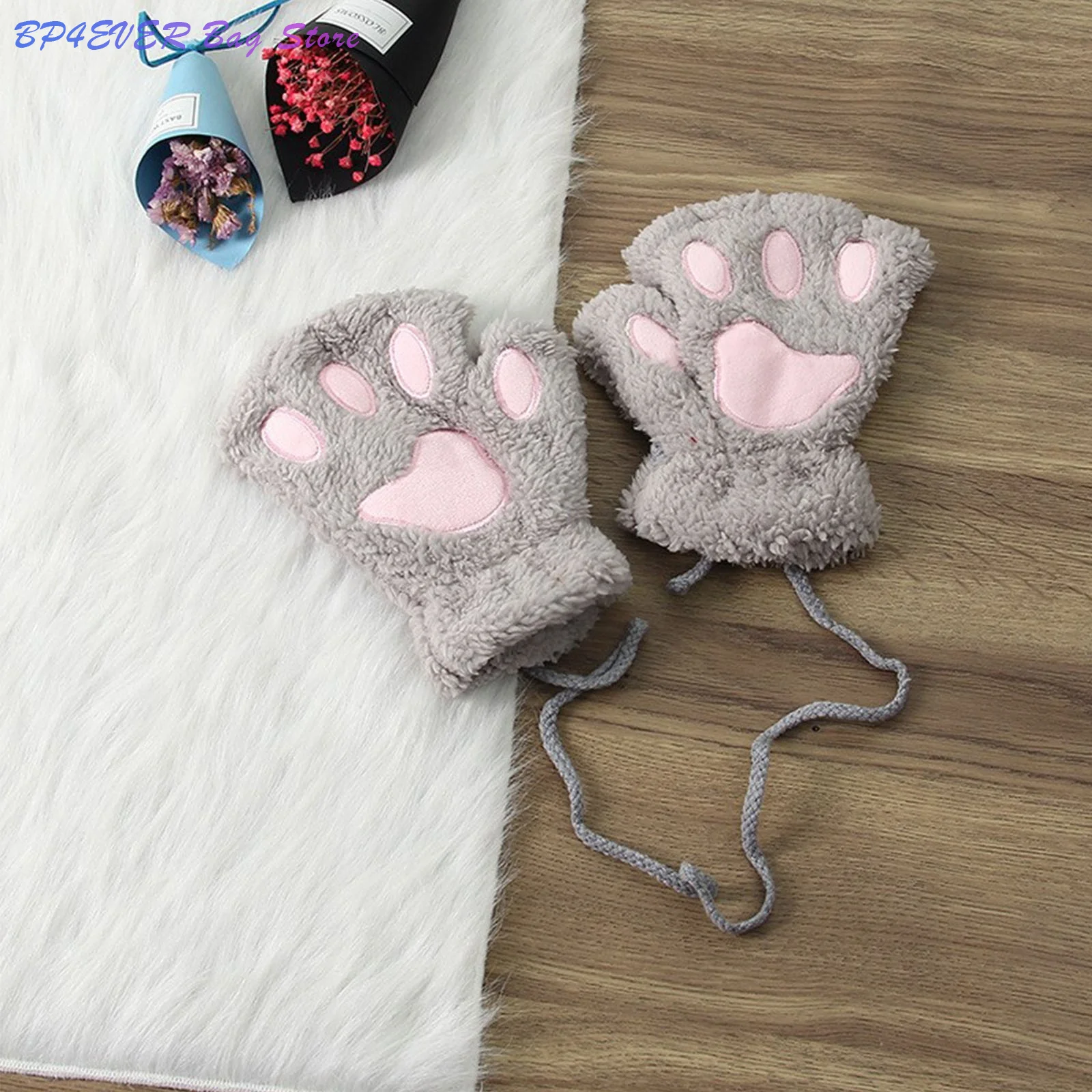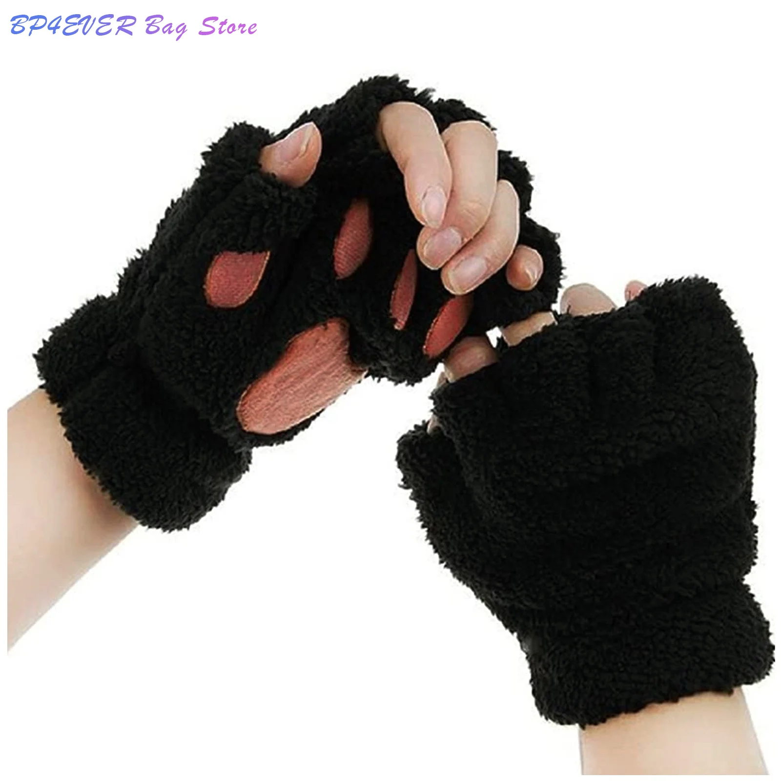 Перчатки с кошачьими крапанами, плюшевые перчатки без пальцев в виде медвежьих лап, милые женские толстые флисовые милые перчатки, перчатки для глаз