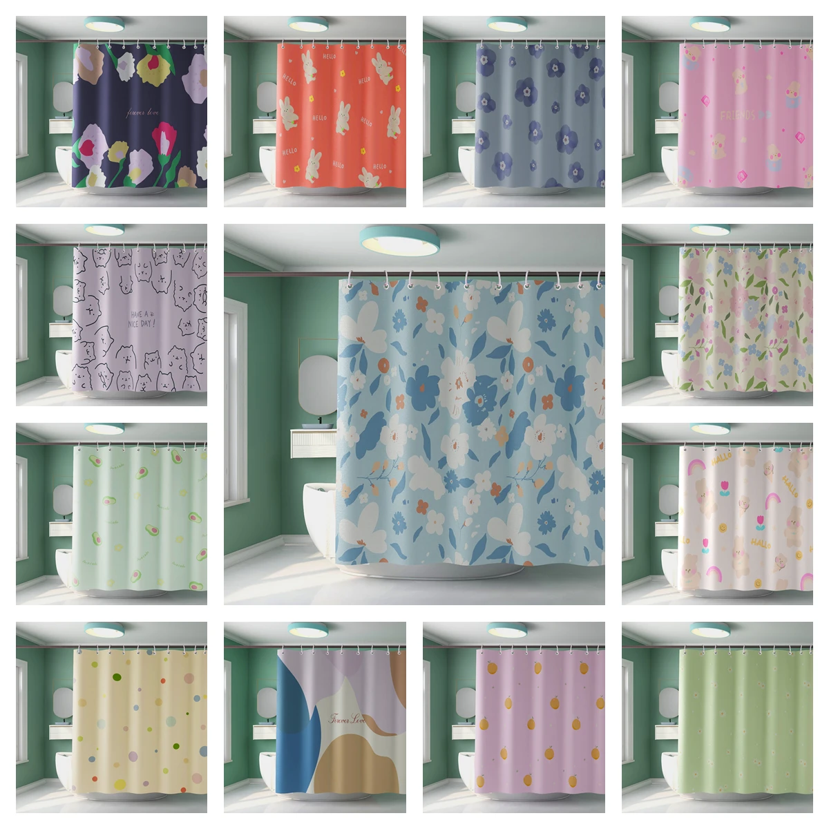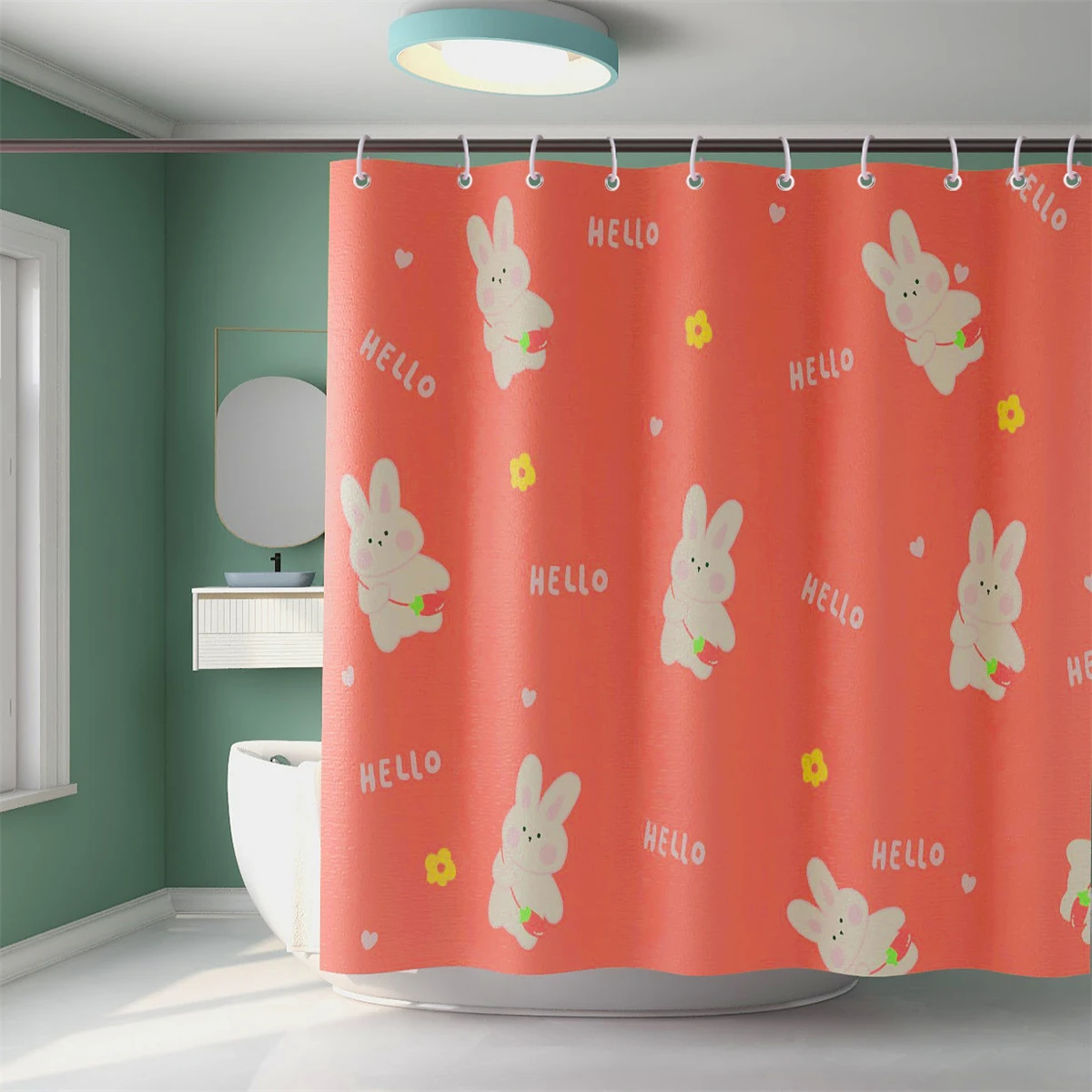 Занавески для ванной из полиэстера, водонепроницаемые, с изображением кролика, животных