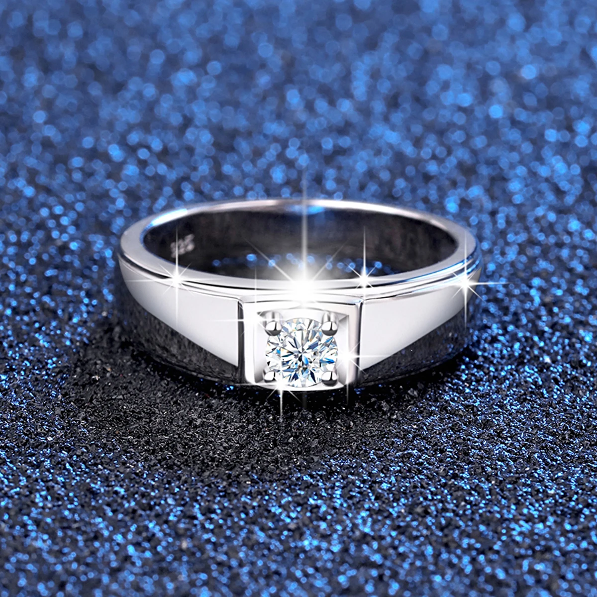 Мужское кольцо из серебра 925 пробы, с муассанитом