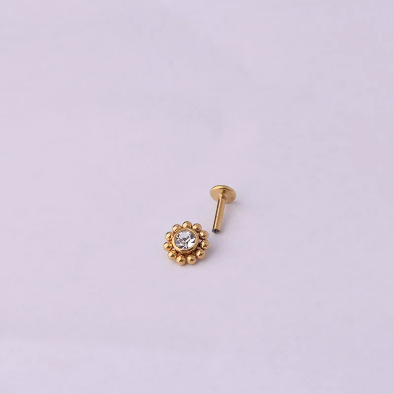 Серьга-гвоздик с кристаллами для пирсинга, ювелирное изделие с плос...