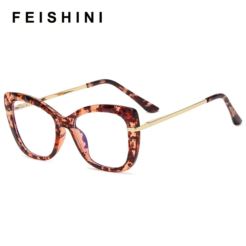 Feishini 2022 искусственные очки с синим светом, блокирующие фильтр, снижающие нагрузку на очки, модная прозрачная оправа для очков, женские очки кошачий глаз