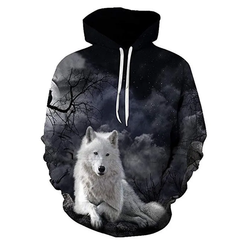 Мужской свитер с капюшоном, повседневный пуловер с 3D-принтом волка...