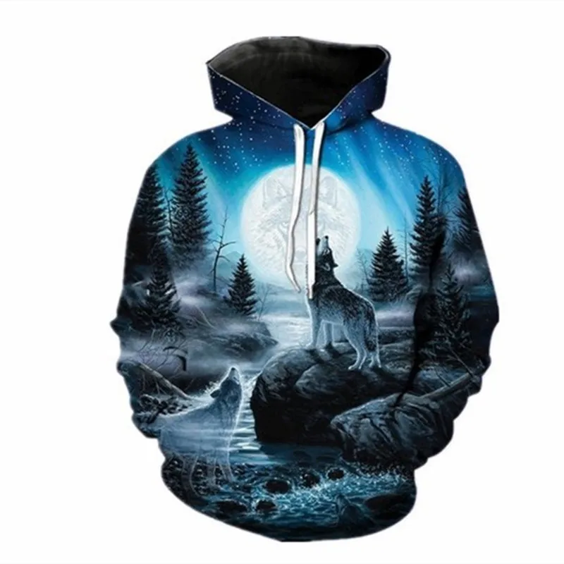 Мужская толстовка с капюшоном, с изображением волка, Луны, галактик...