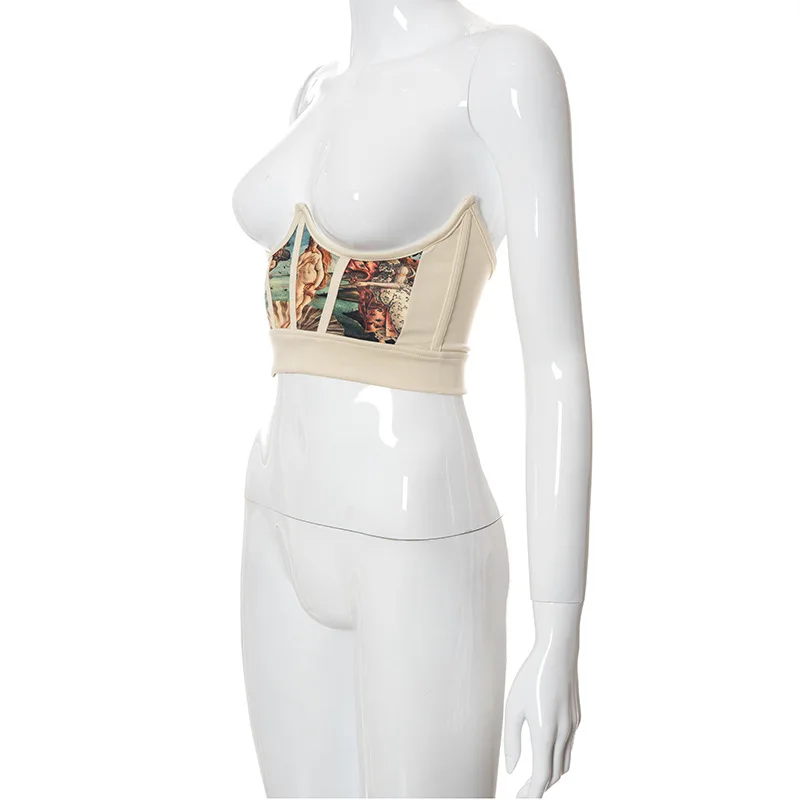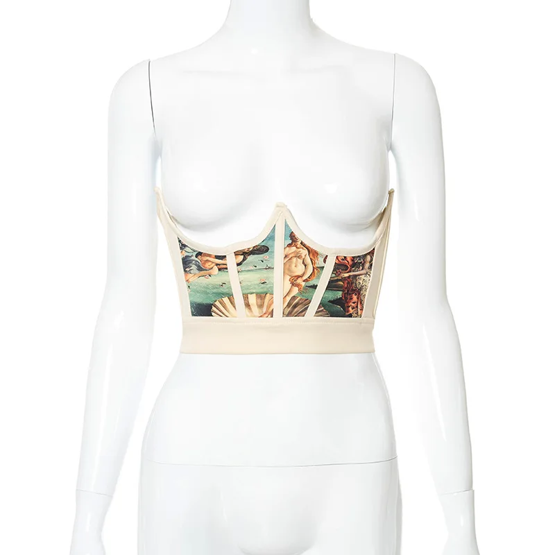 Женский уличный корсет, лоскутный топ с винтажным принтом в виде ры...