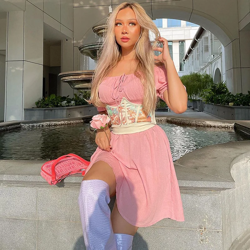 Винтажный Модный эстетический корсет с косточками и принтом, пояс п...