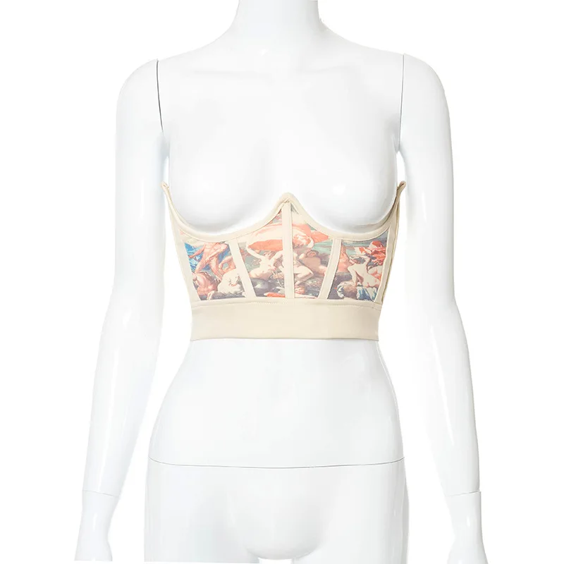Новинка 2021, корсет с принтом ангела, женский тонкий сексуальный к...
