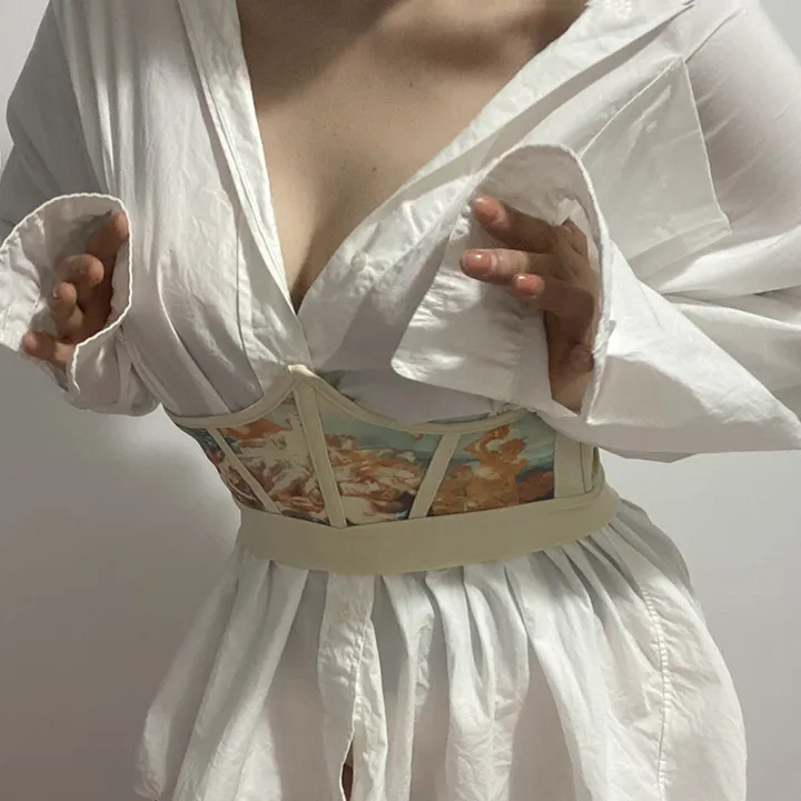 Женский корсет с принтом в виде ангела, винтажный пояс, облегающий ...