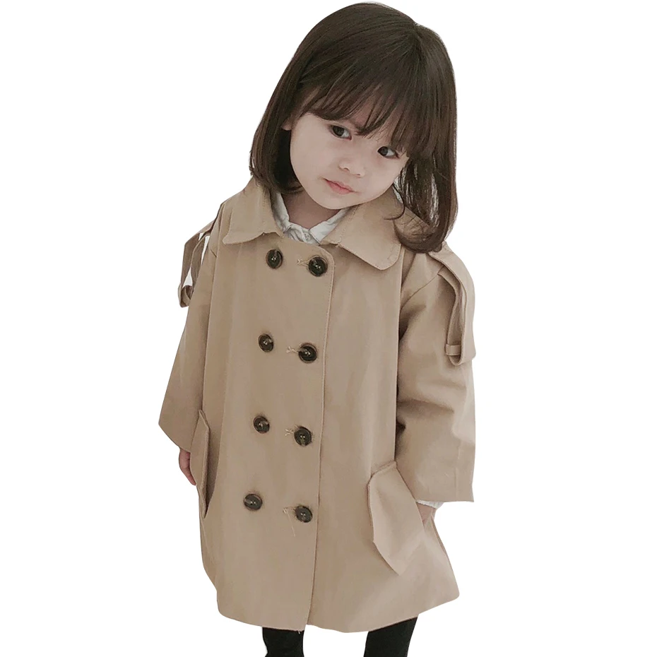 Длинная Куртка для девочек, верхняя одежда, однотонное пальто для девочек на весну и осень, Детское пальто, Повседневная стильная одежда для девочек