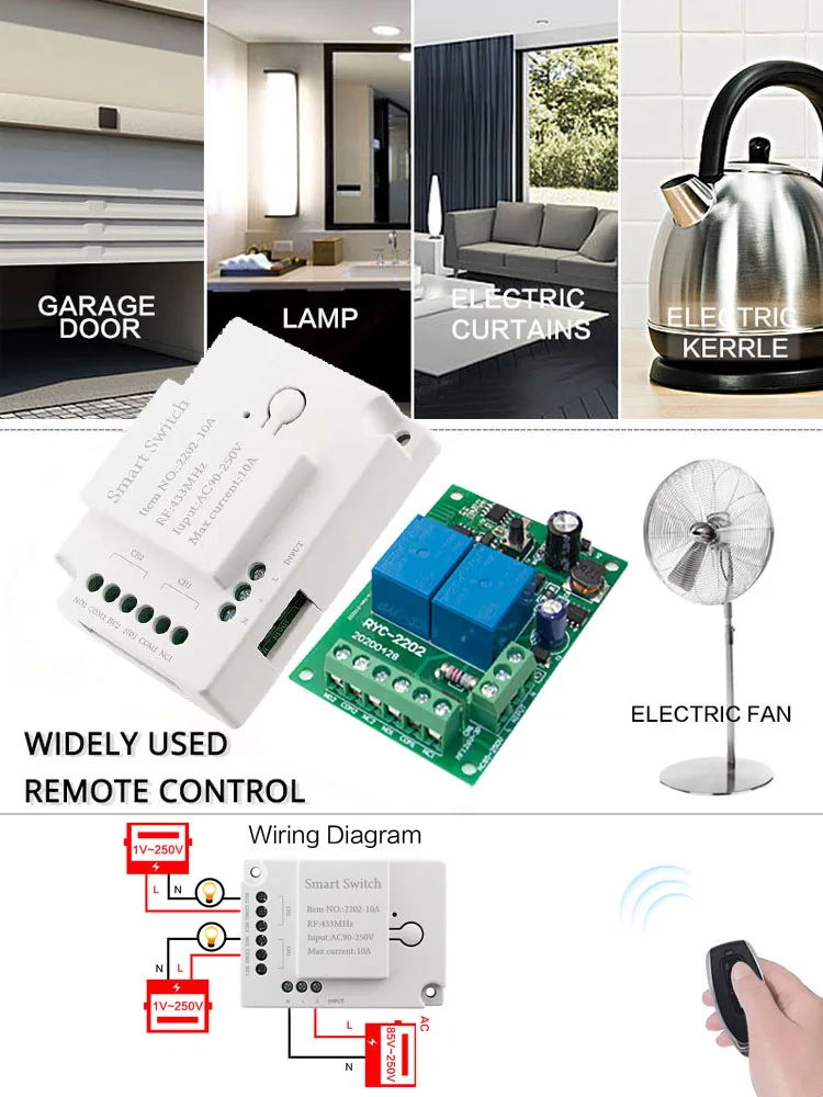 Характеристики433 MHz RF Remote Control Circuit Universal Wireless Fan Light Switch