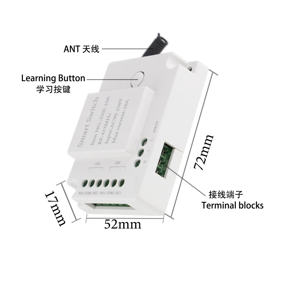 Номер моделиAC 85V~ 250V 110V 220V 240V 2CH Relay Wireless Receiver and Controller