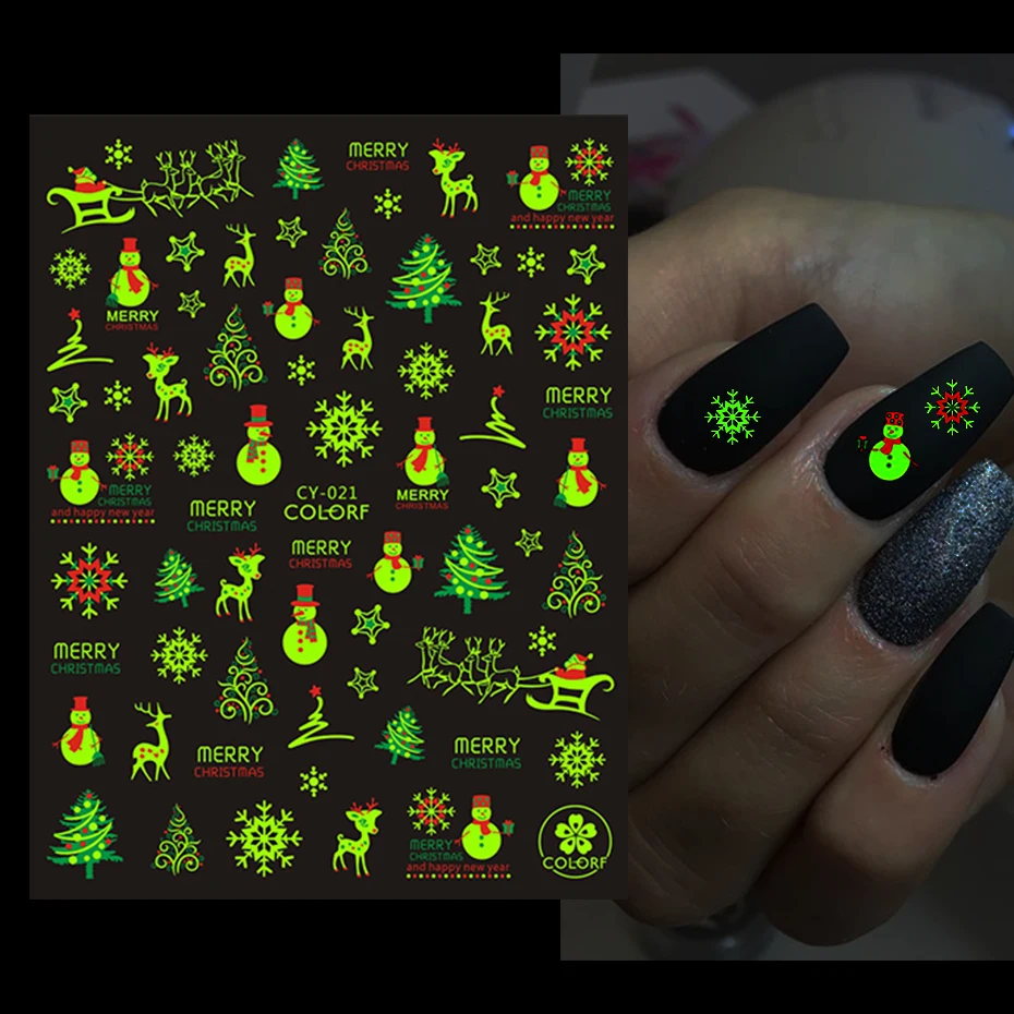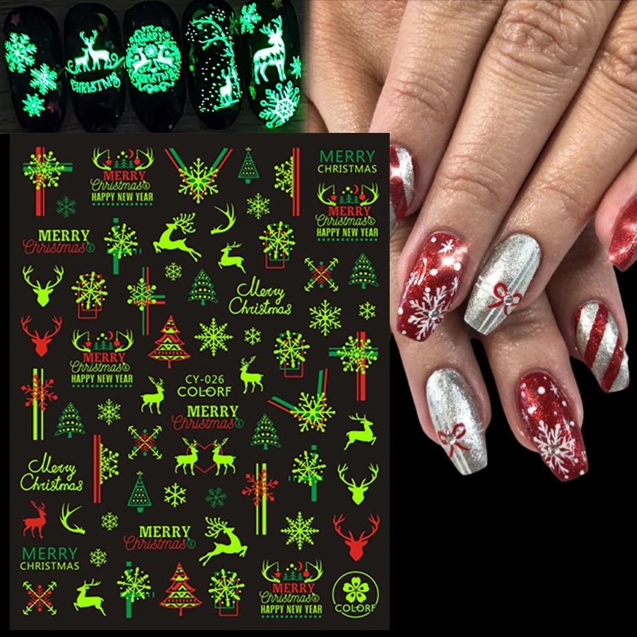 Светящиеся наклейки для ногтей Merry Christmas, флуоресцентные Рождественские Зимние Слайдеры для ногтей, подвески, светящиеся в темноте, наклейки для маникюра
