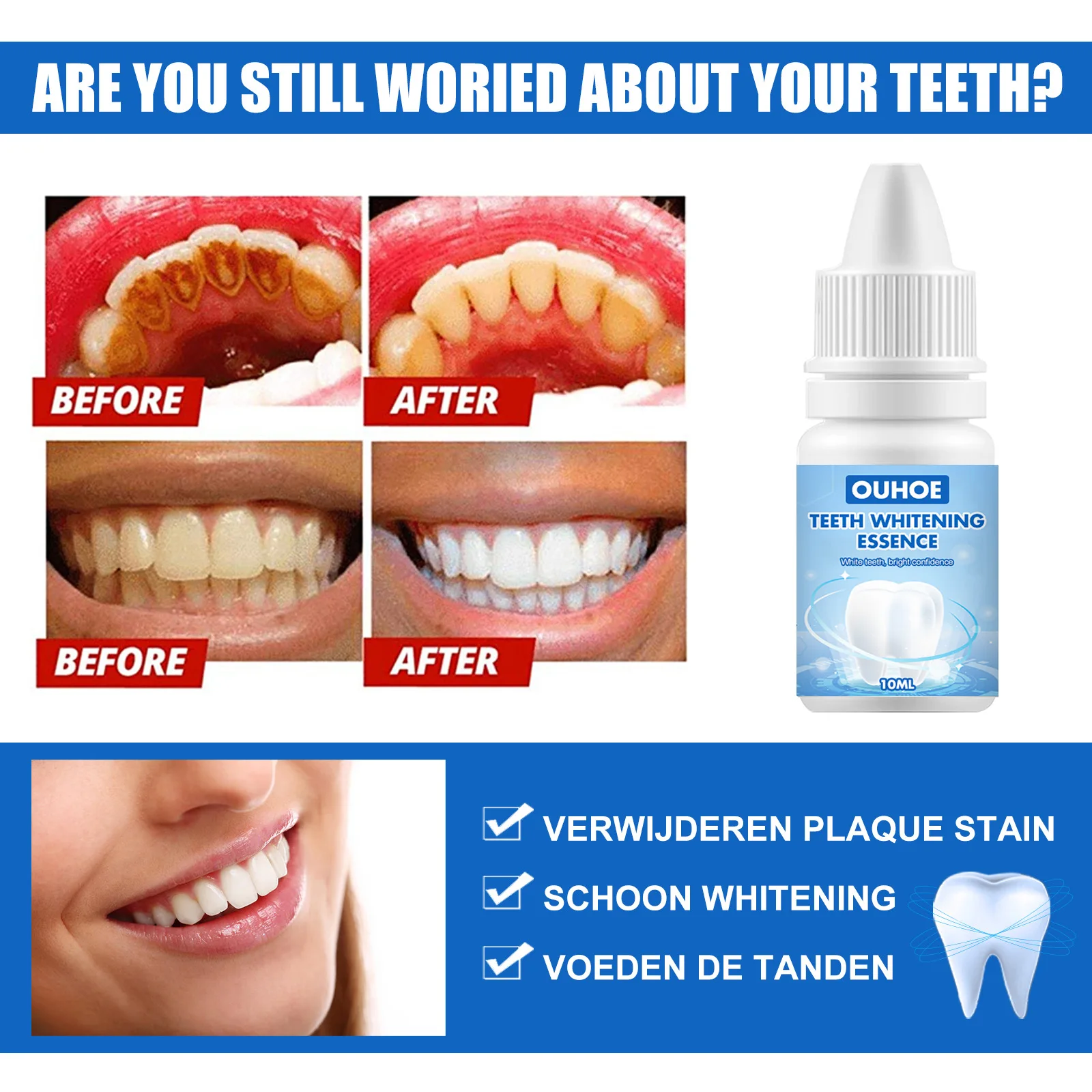 Эссенция для зубов эффективно удаляет зубной налет, чистит зубы, моет зубы, удаляет черные зубы с белой цветопередачей, отбеливает зубы