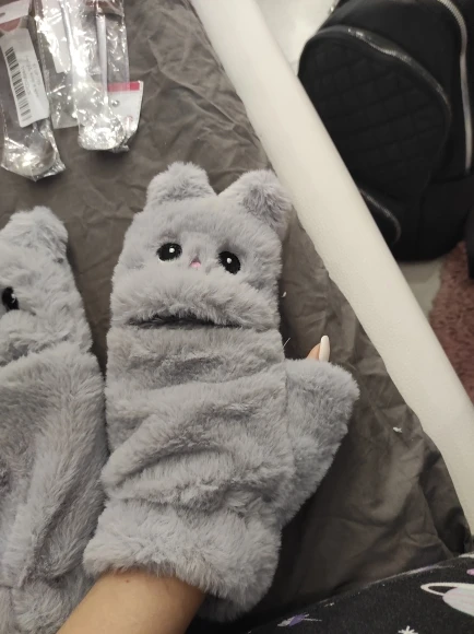 Доставка до Твери около 3 недель. Интересные. Носить конечно лучше с открытыми пальцами, так как если пальцы закрыть, мордочка окажется на внутренней стороне. Это не очень удобно. Большой палец совсем не закрывается, на нём присутствует резинка, чтобы более менее было плотнее. К покупке рекомендую. С продавцом не общалась, не было необходимости.
