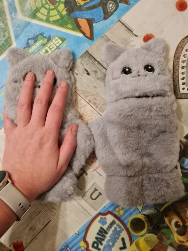 Варежки приехали быстро. Очень милые, мягкие и теплые. Котики застёгиваются резиночкой к пуговке. На одной резиночка крохотная, еле застегнула. А так просто супер, дочка очень довольна. Большой палец не прячется. Заказывала дочке 9лет, ей идеально, немного великоваты, но в мороз большой пальчик спрячет, за счёт миниатюрности руки☺️