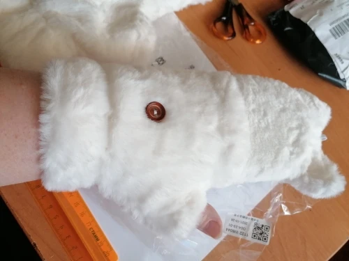 доставка быстрая. варежки скорее декоративные т.к. открыт большой палец
