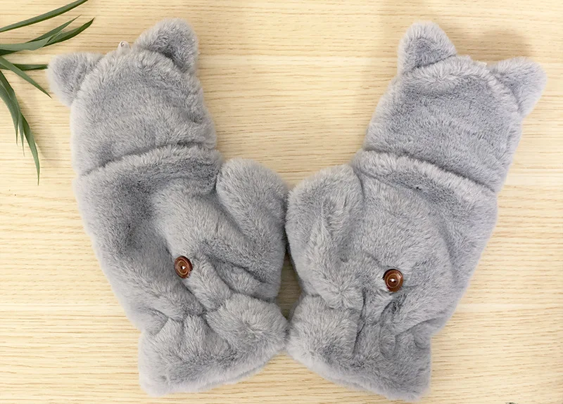 Меховые варежки из кроличьего меха, раскладные перчатки без пальцев, женские зимние плюшевые теплые перчатки, Мягкие плотные перчатки для женщин и девушек, гибкие полупальцы