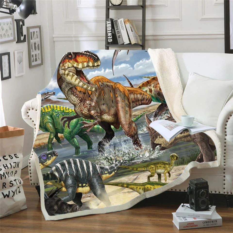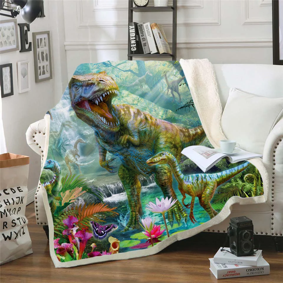 Пледы Одеяло динозавр Юрского периода 3D бархатное плюшевое одеяло ...