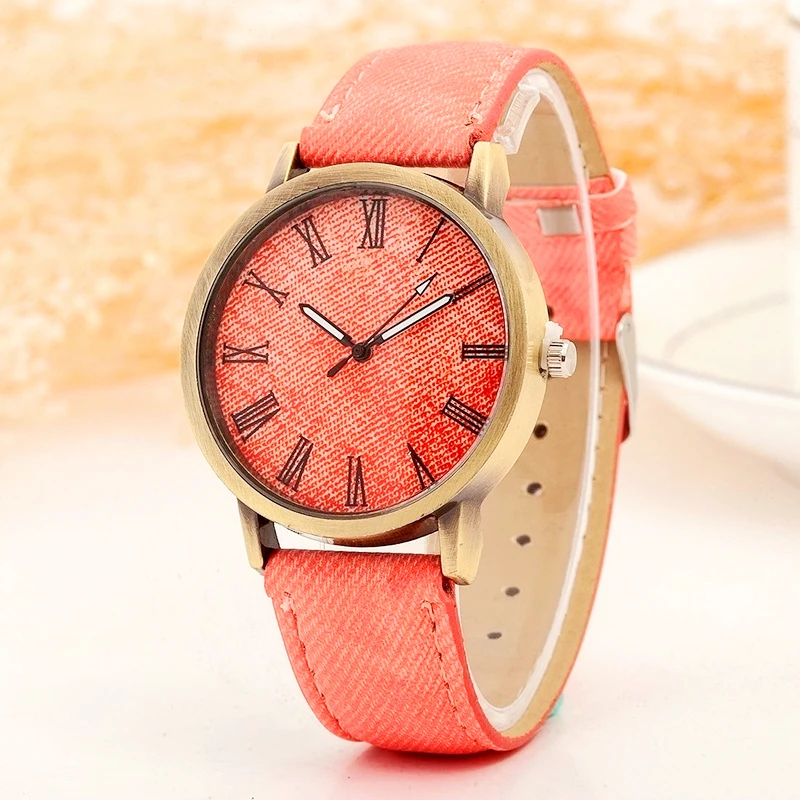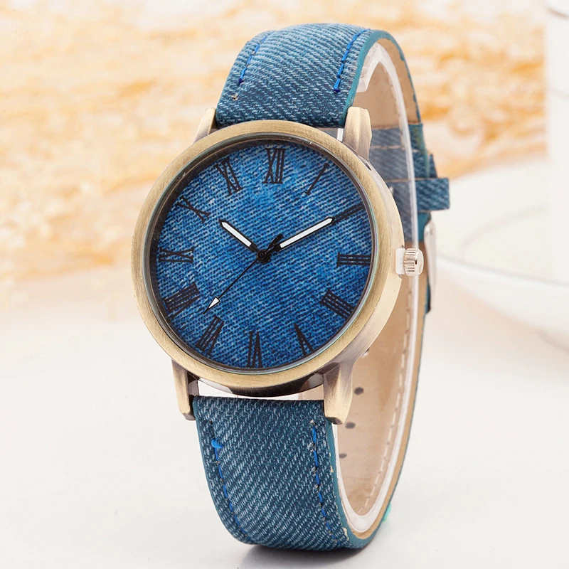 Женские кварцевые часы, наручные часы из джинсовой ткани и кожи, по...
