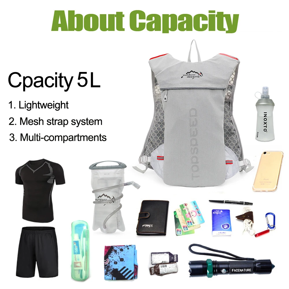 INOXTO trail running-Ультра-светильник 5л рюкзак, жилет для бега ги...