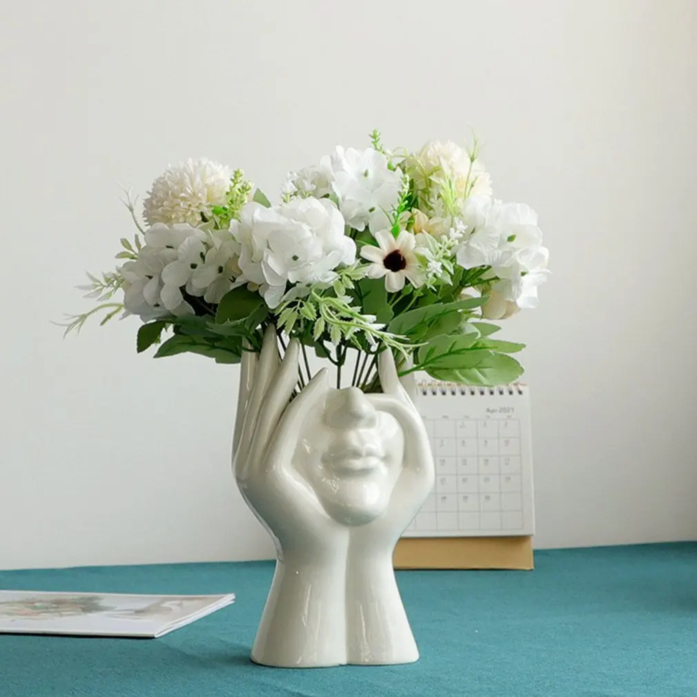 Новинка 2021, керамическая креативная скульптура, ваза для цветов с человеческим лицом, искусство, головы человека, абстрактные растения, цветочный горшок, композиция для домашнего декора