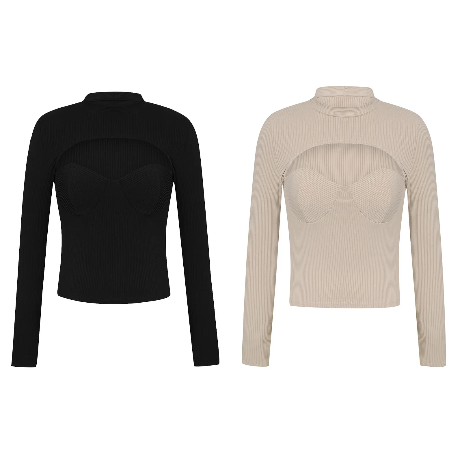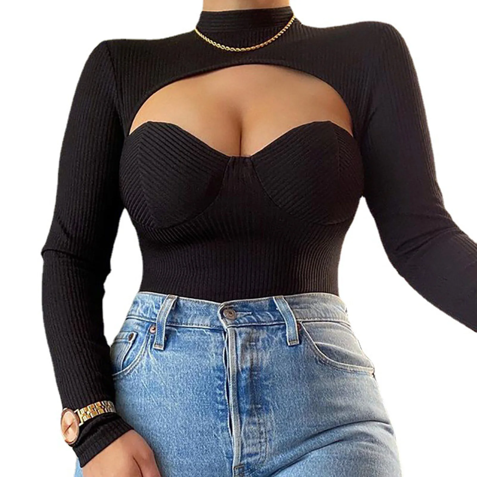 Женский трикотажный пуловер из полиэстера, однотонная облегающая футболка с длинным рукавом и ложным воротником