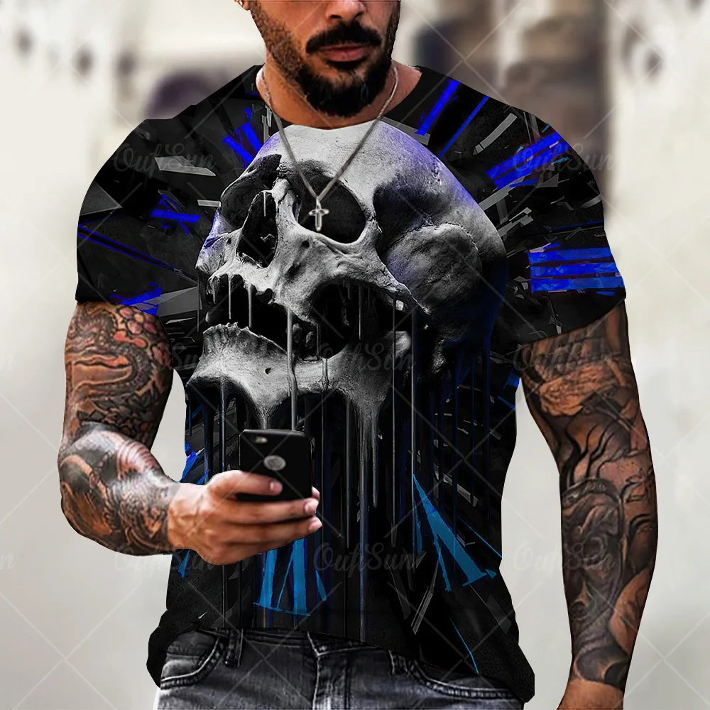 Мужская футболка с 3D-принтом черепа, модная рубашка с коротким рук...