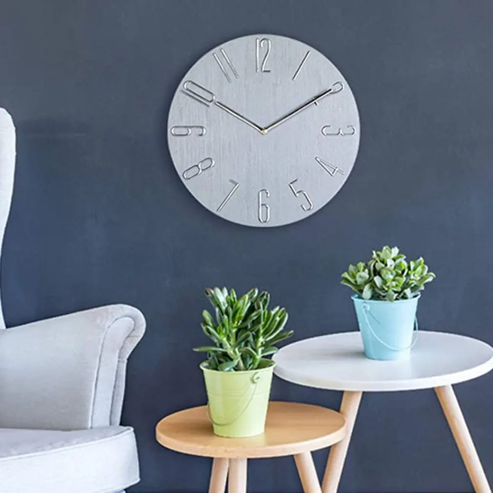 12-дюймовые Подвесные часы, стильные 3D цифры, доска под дерево, настенные часы, Подвесные часы для интерьера, украшение комнаты, диаметр