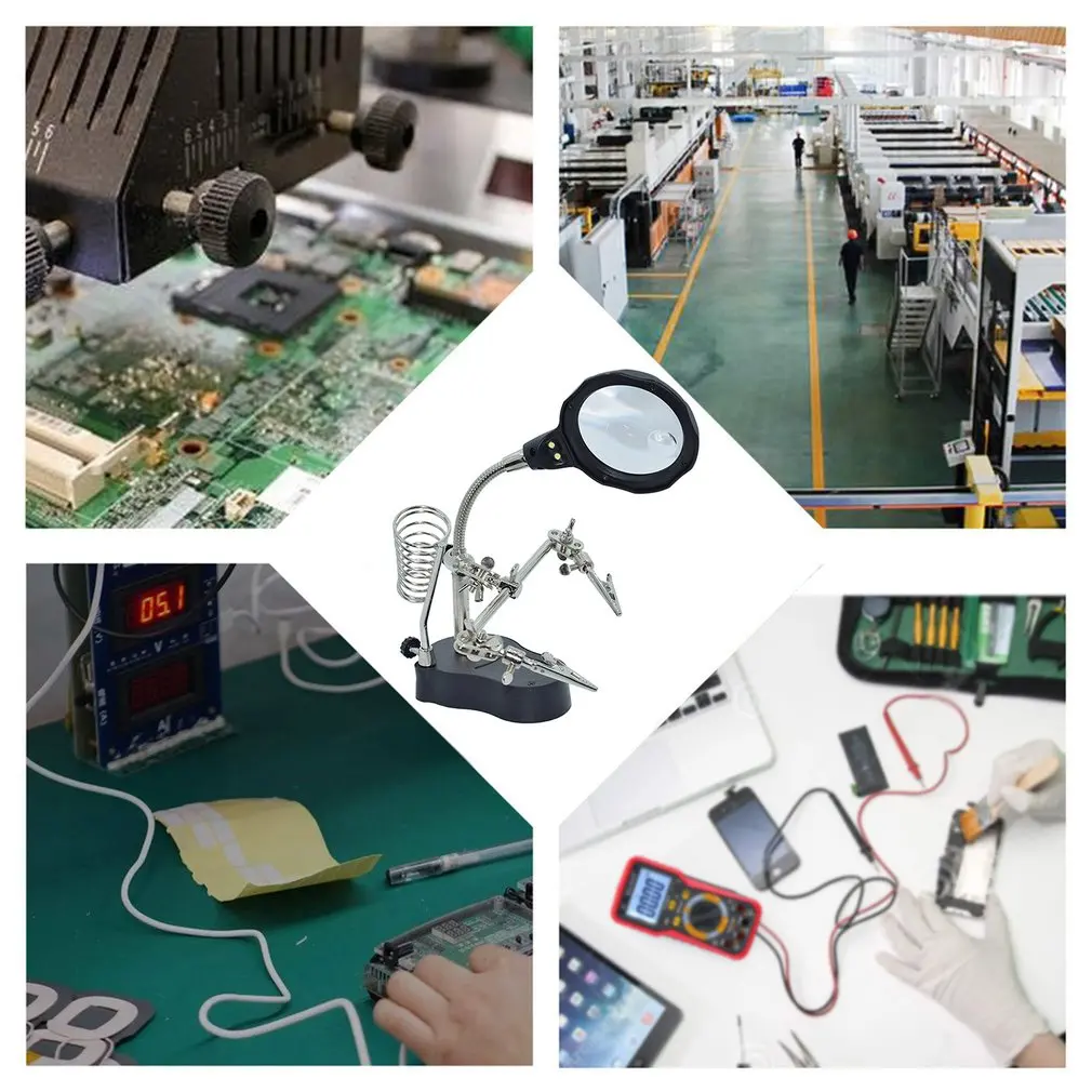 Сварочное увеличительное стекло со светодиодной подсветкой, лупа с вспомогательным зажимом, лупа, ручной паяльник, подставка-держатель для паяльника