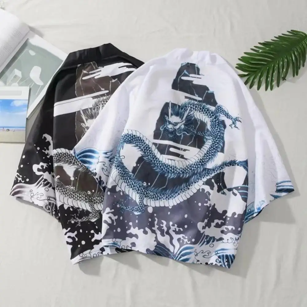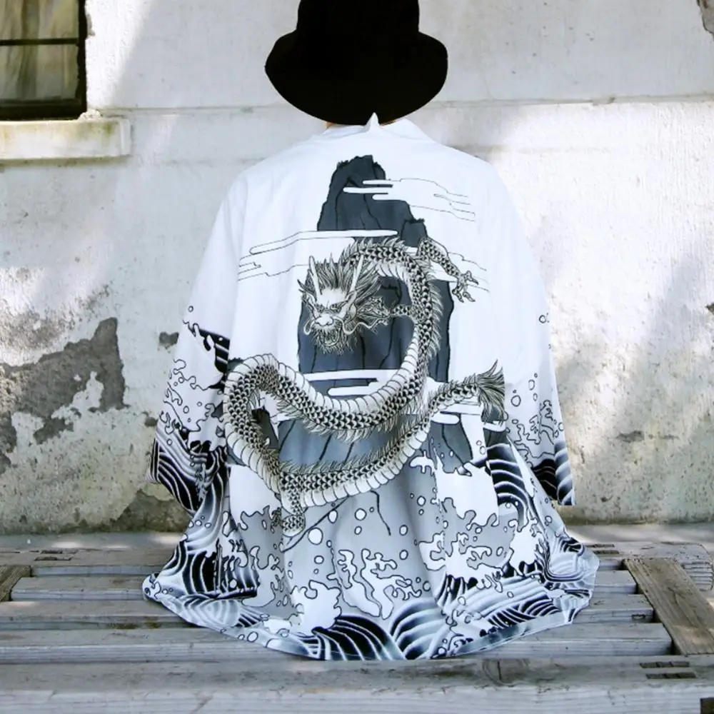 Кимоно мужское, с волнистым драконом, с рукавом 34