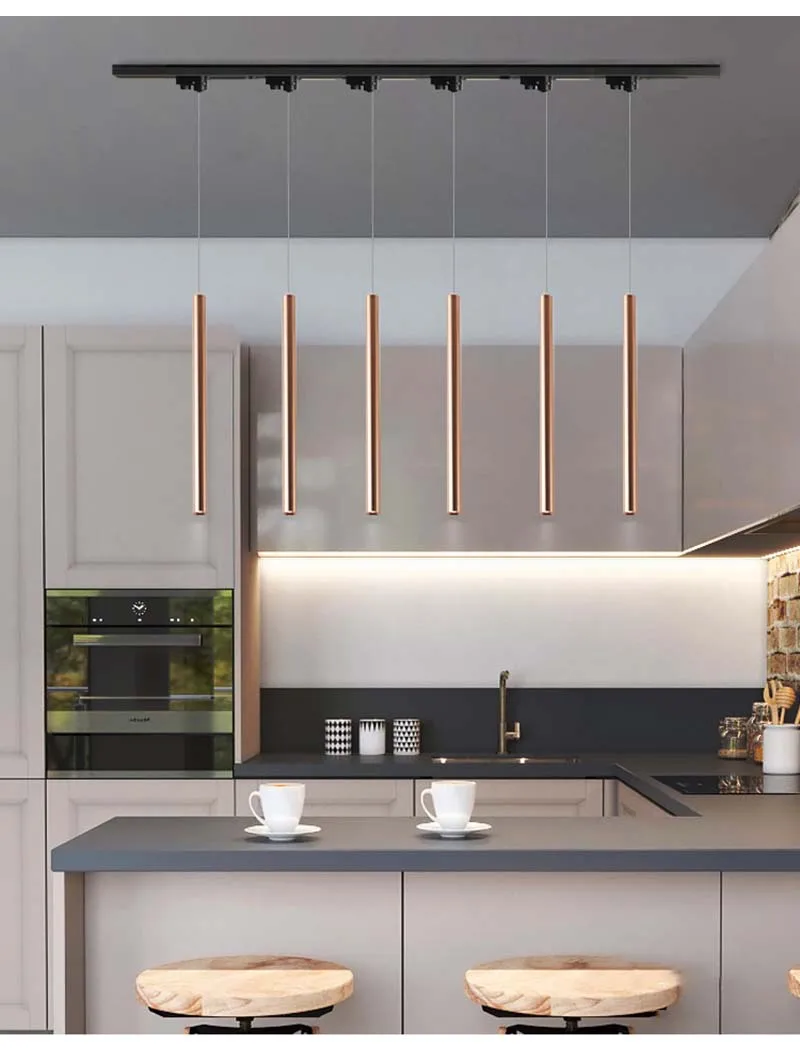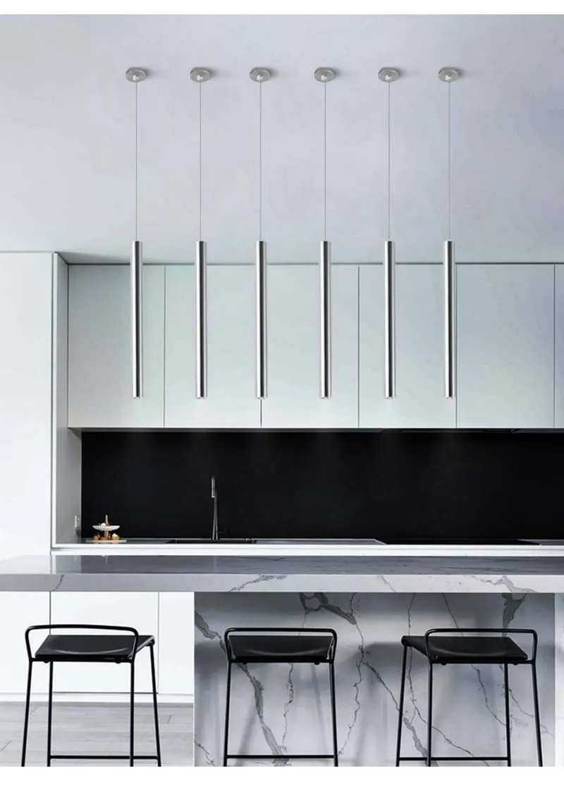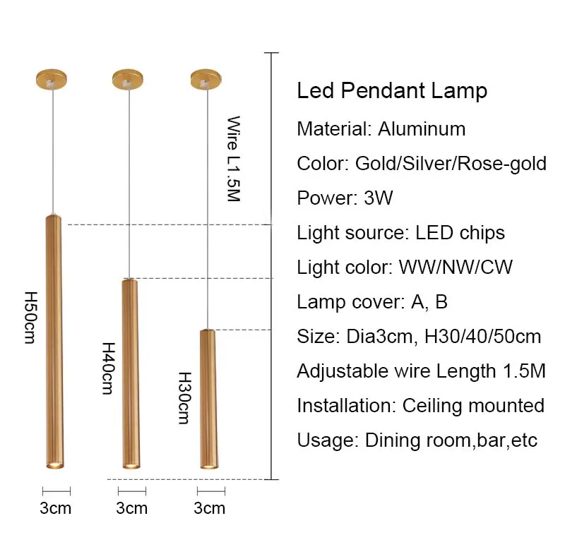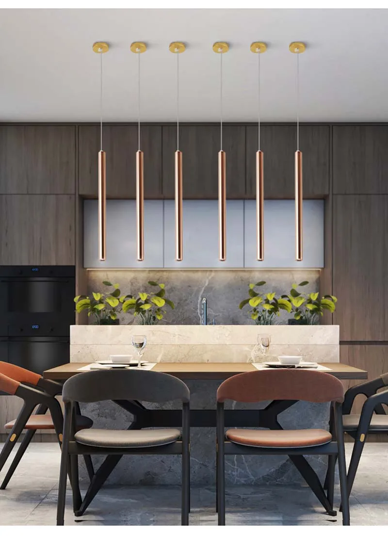 Новое поступление, подвесная Светодиодная лампа с высоким блеском, серебристая, круглая, длинная трубка, розовое золото, столовая, барная лампа, диаметр 3 см, Высота 30405060 см