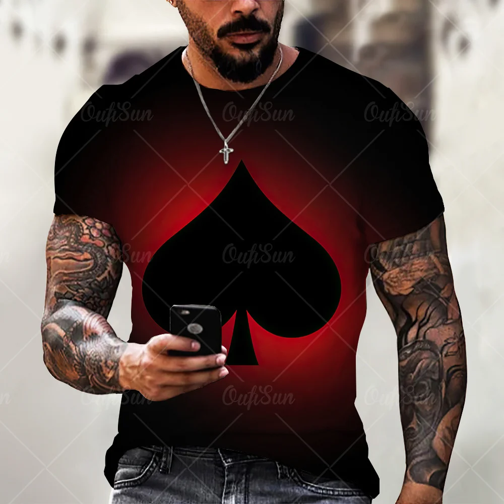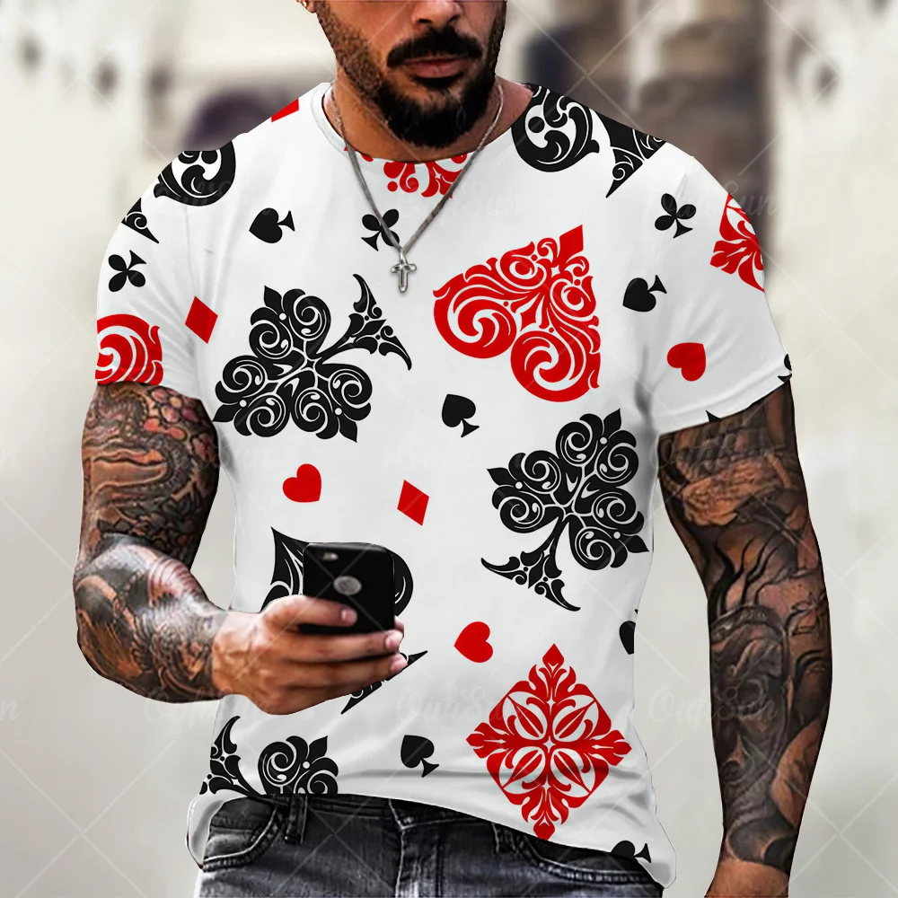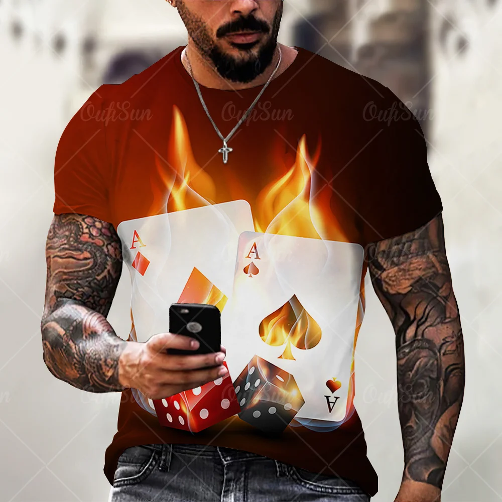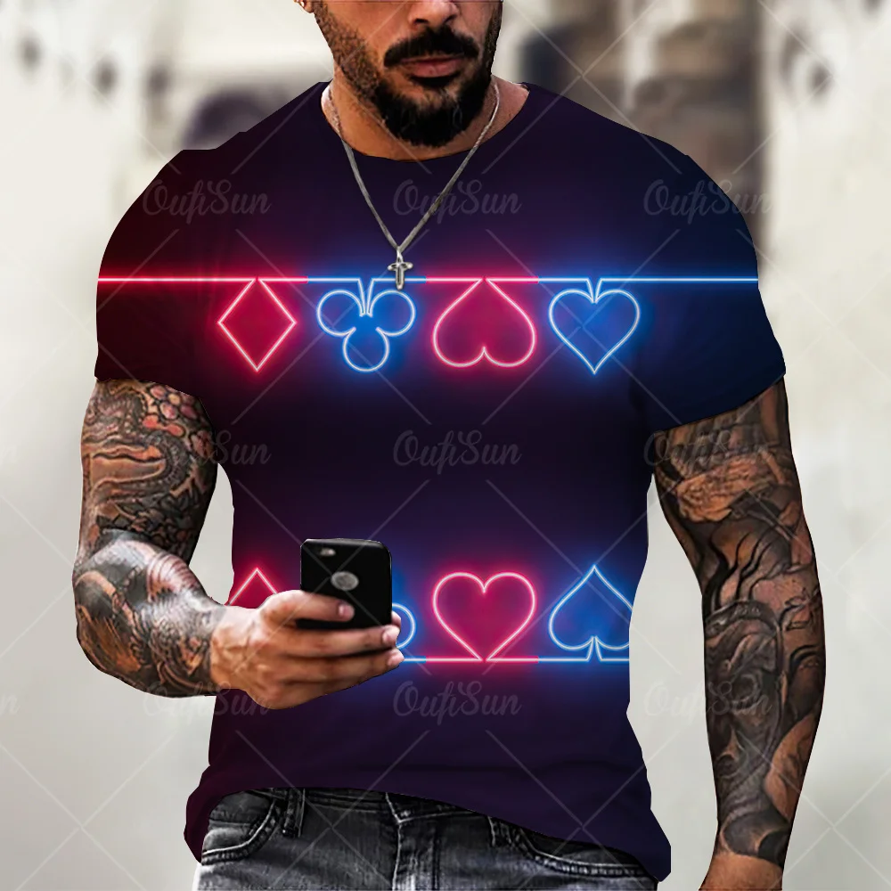 Мужская модная летняя футболка, уличная одежда с круглым вырезом, с коротким рукавом, неоновый Повседневный Топ, 3D Рисунок покера