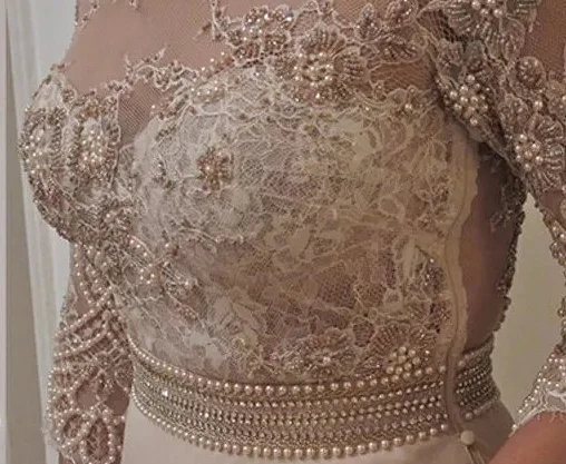 Дизайнерское кружевное свадебное платье с длинными рукавами, с аппл...