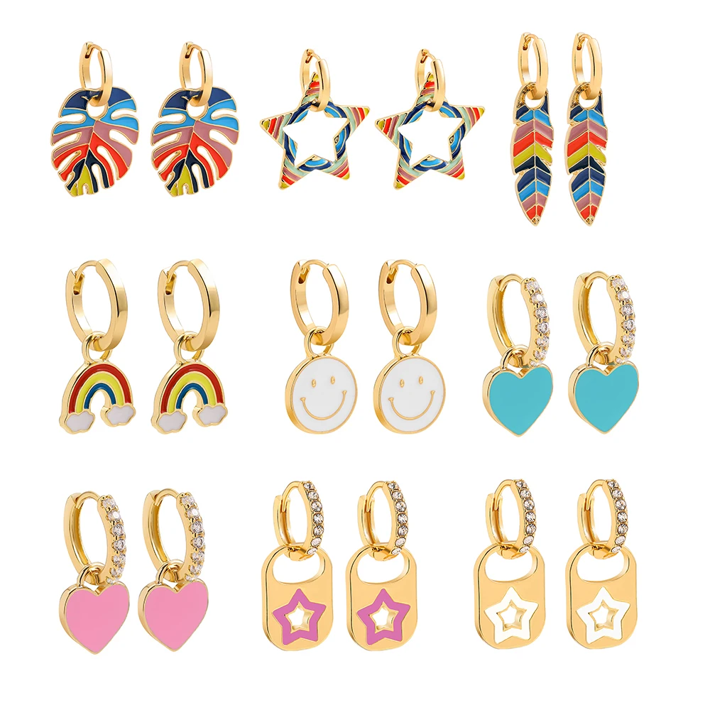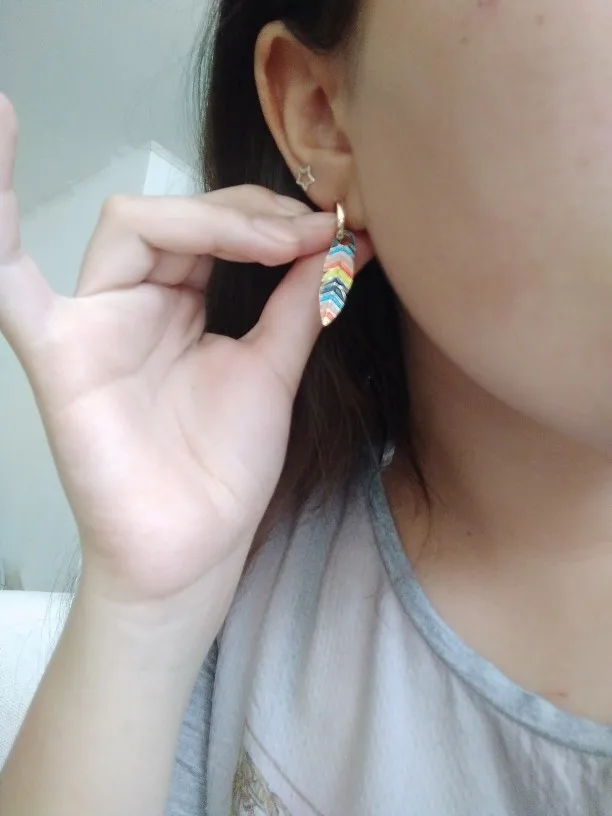 Серьги-подвески женские, разноцветные, эмалированные, в форме листьев