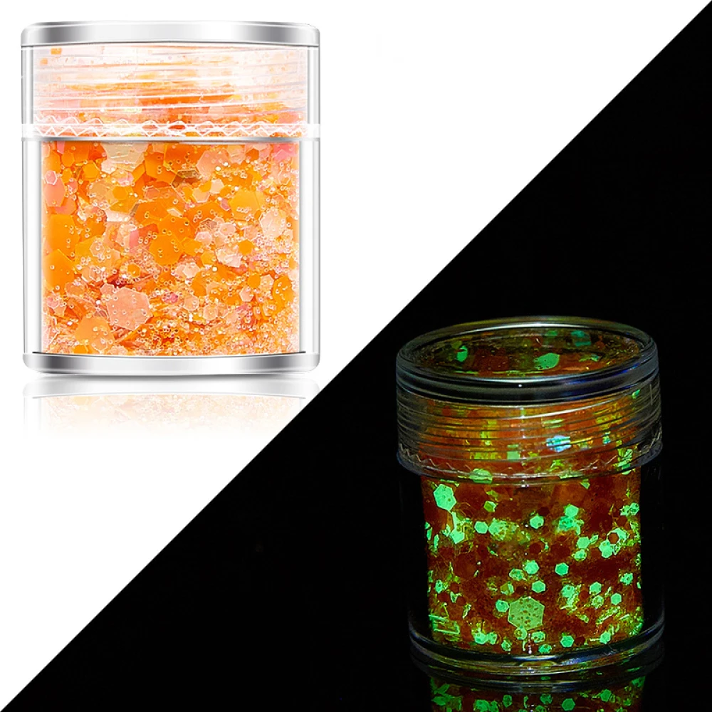 Светящаяся пудра для дизайна ногтей, блестящий неоновый шестигранны...