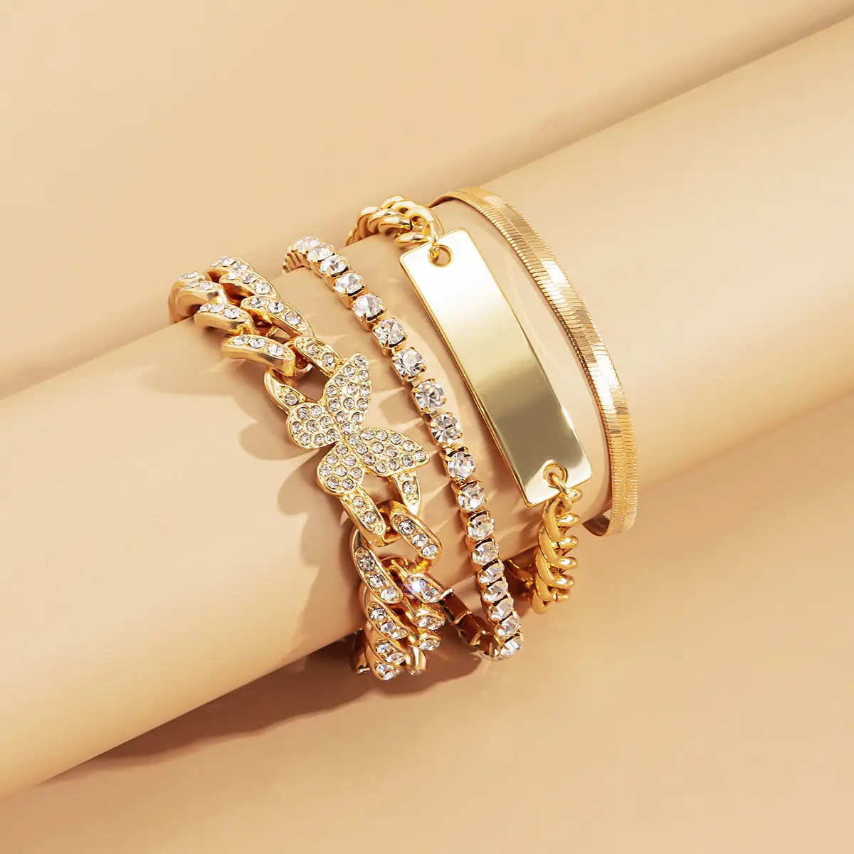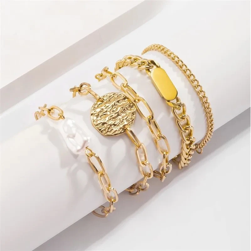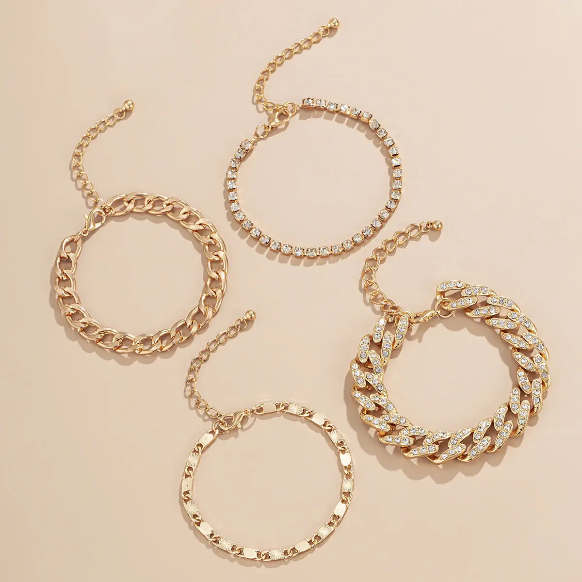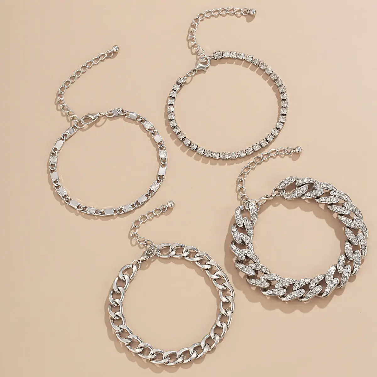 Комплект женских браслетов из кубинской цепи в стиле панк, 4 шт.