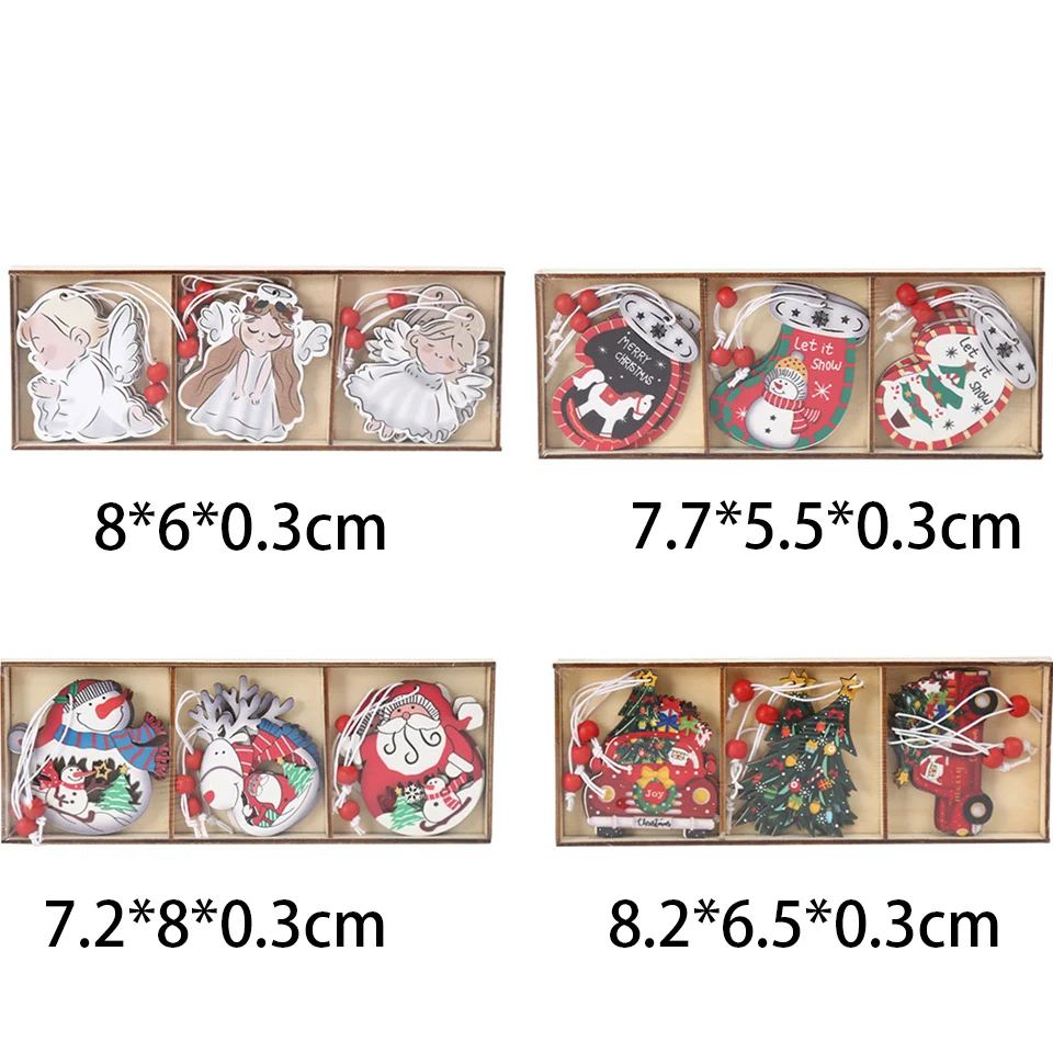 9 шт./кор. Рождественский деревянный кулон Ангел украшения с изображением Санты DIY Дерево подвесное украшение Рождественские украшения DIY детские подарки